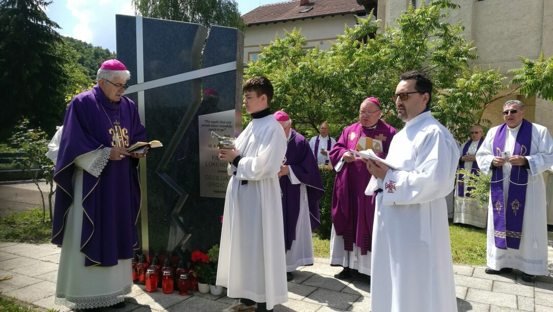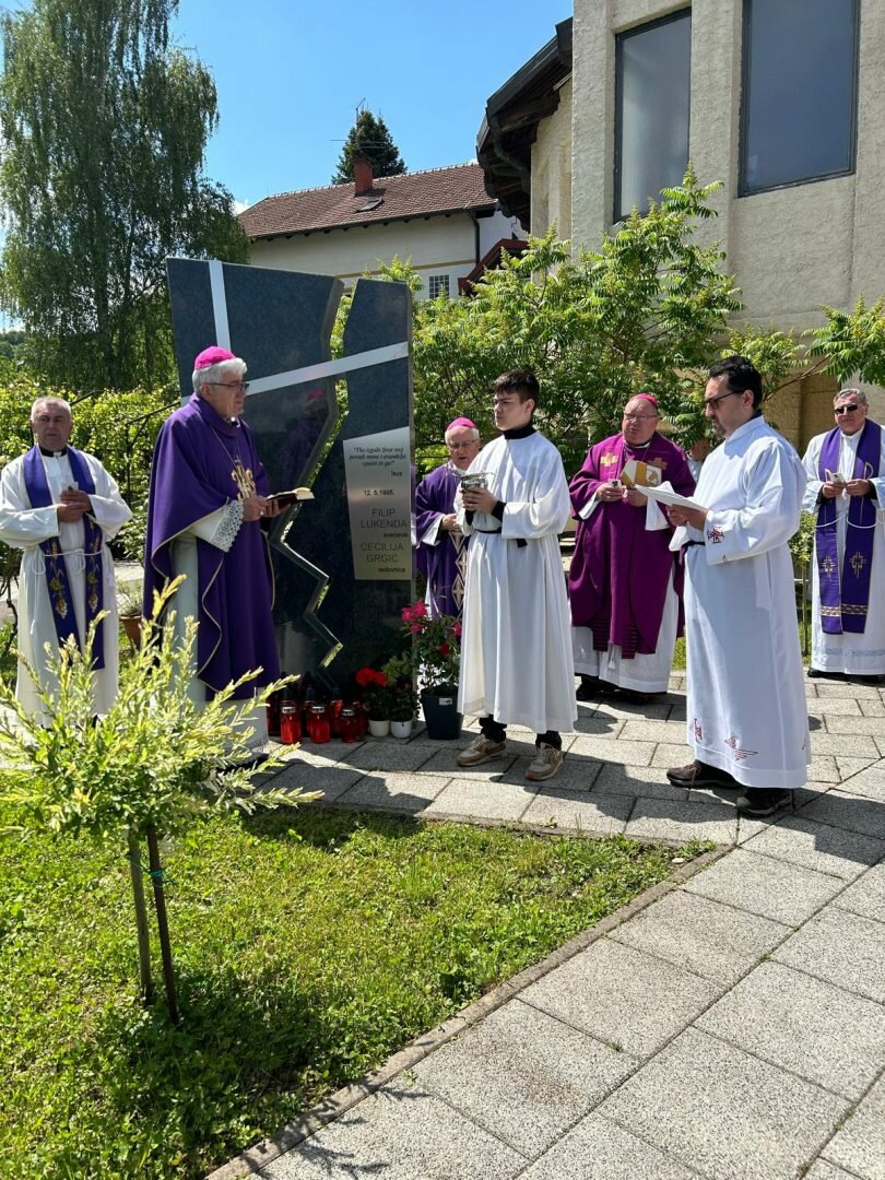Poslije svete mise kraj spomenika podignutog u spomen s. Cecilije i vlč. Filipa biskup Majić predvodio je molitvu odrješenja za pokojne.